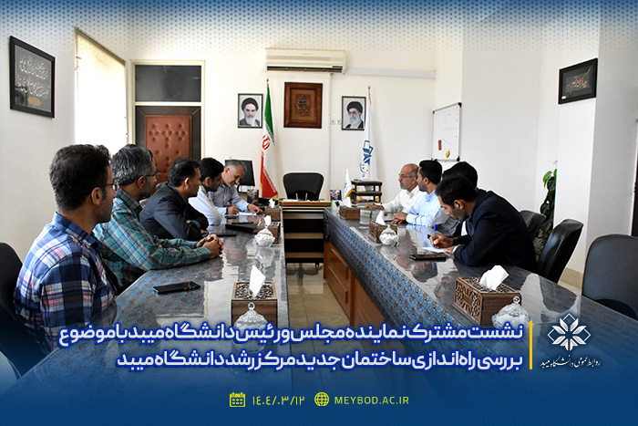 نشست مشترک نماینده مجلس و رئیس دانشگاه میبد با موضوع بررسی راهاندازی ساختمان جدید مرکز رشد دانشگاه میبد - دانشگاه میبد